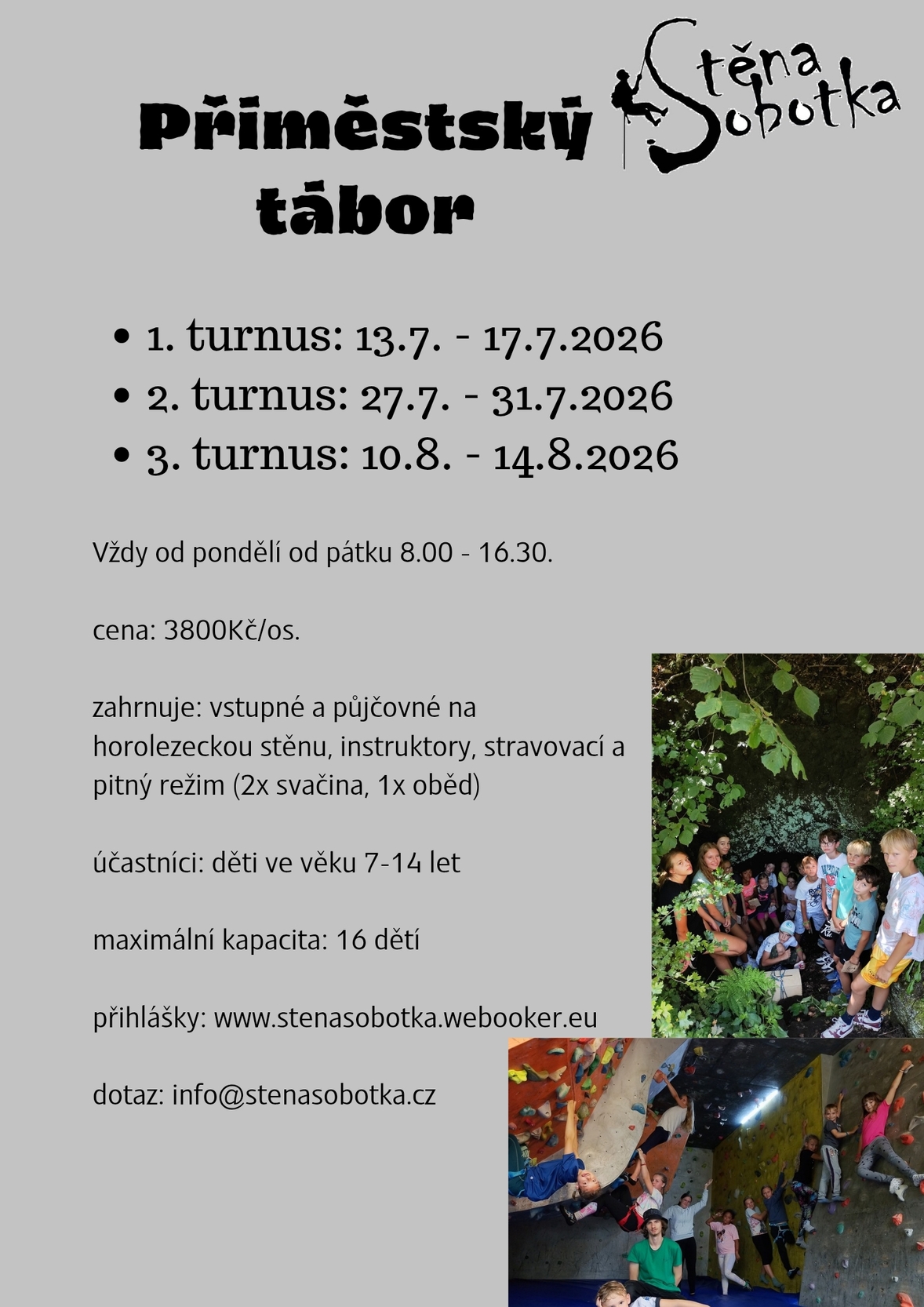 Děti čekají nové lezecké výzvy a spousta legrace pod vedením zkušených instruktorů.